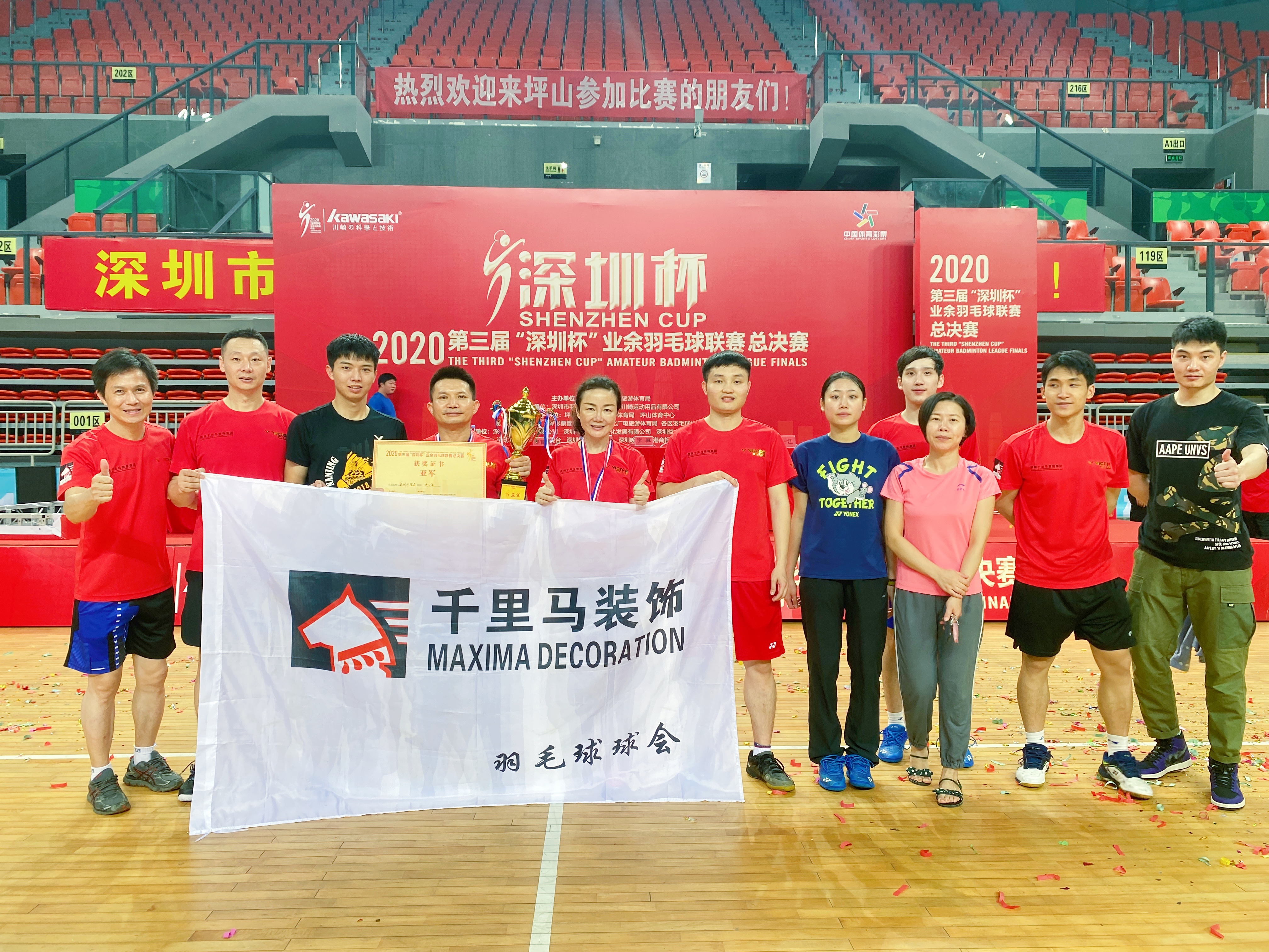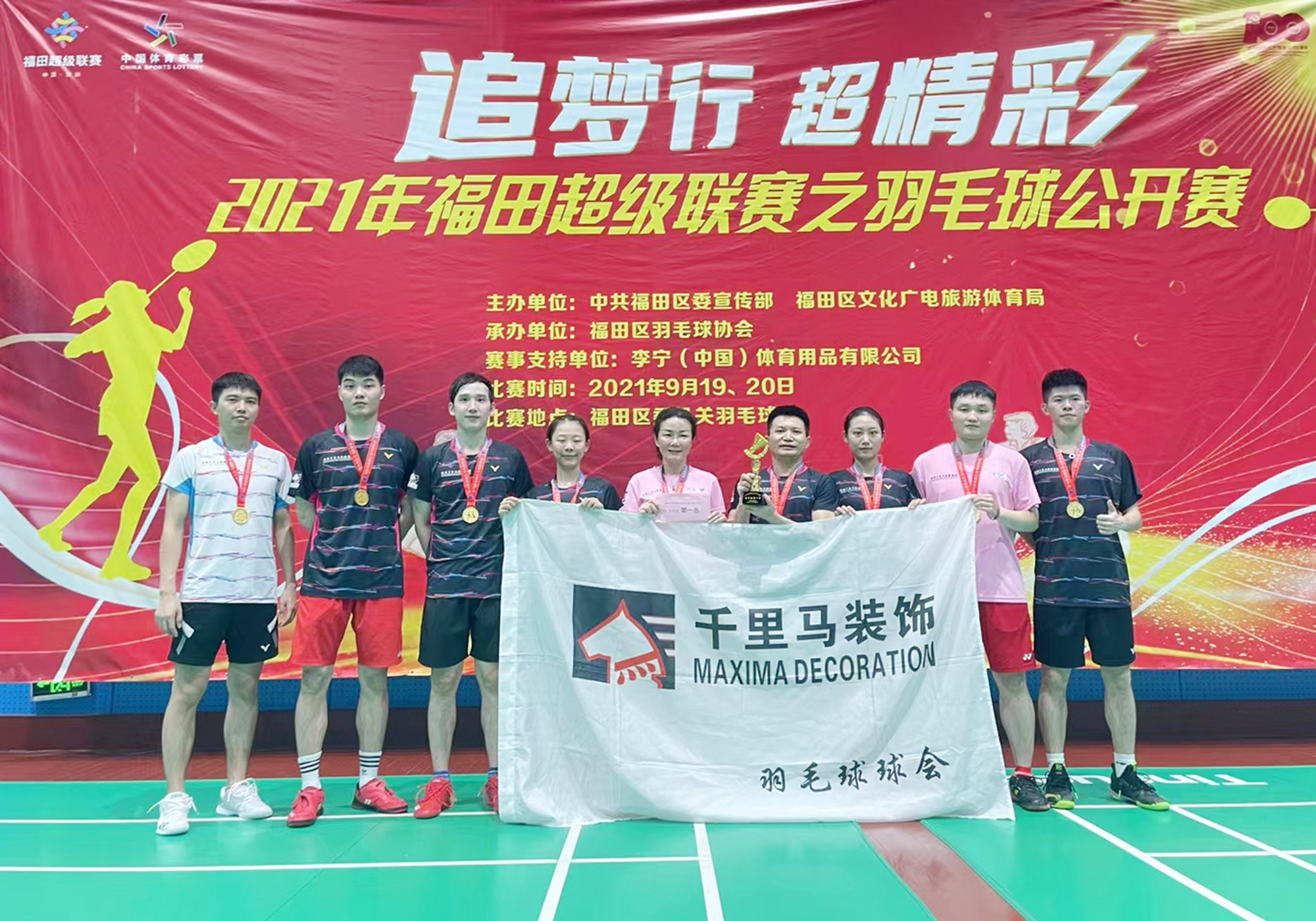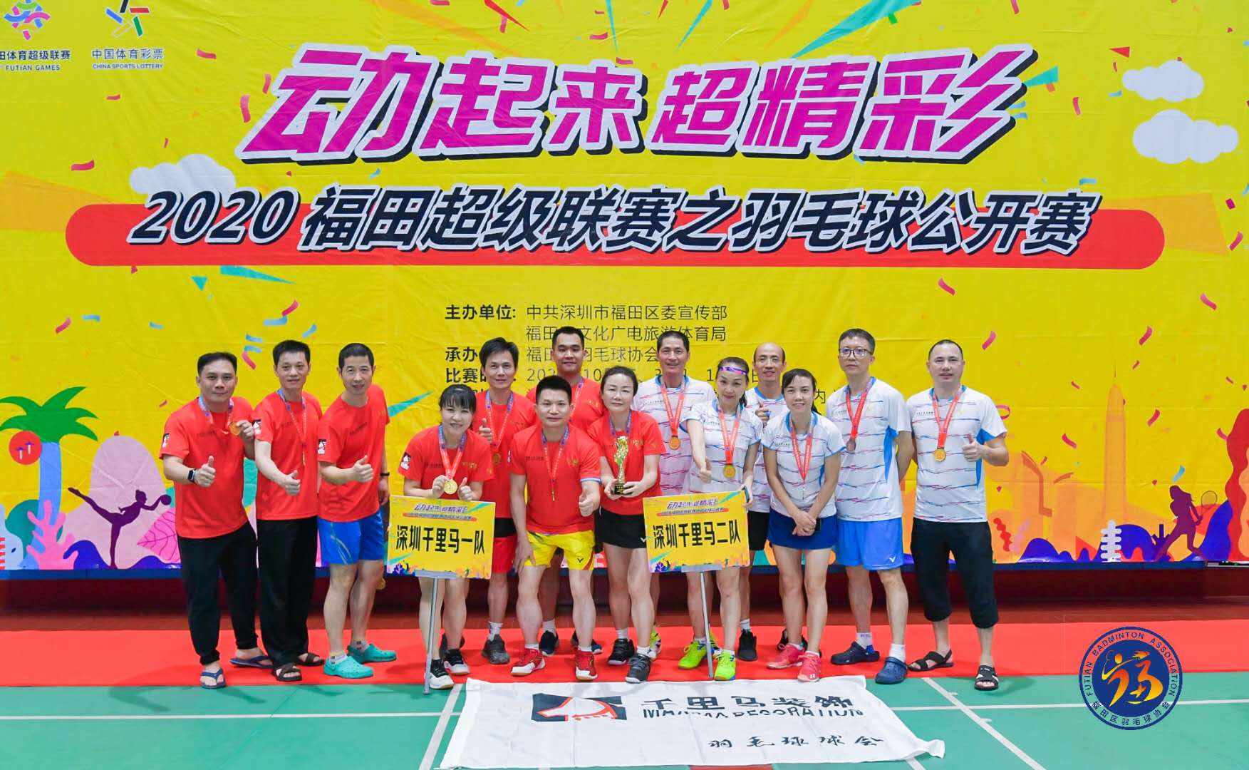 2020年,在深圳經(jīng)濟(jì)特區(qū)建立40周年、福田區(qū)建區(qū)30周年之際,福田區(qū)創(chuàng)新辦賽理念,首創(chuàng)體育超級(jí)聯(lián)賽。本次賽事以“動(dòng)起來 超精彩”為主題,從9月持續(xù)到12月,超過30項(xiàng)賽事活動(dòng)、3000場(chǎng)比賽。 為了響應(yīng)福田區(qū)全民運(yùn)動(dòng)、全民健身的號(hào)召,深圳千里馬裝飾集團(tuán)組織了兩支戰(zhàn)隊(duì)參加了高手如云的超級(jí)聯(lián)賽之羽毛球公開賽。 經(jīng)過兩天的激烈角逐,深圳千里馬一隊(duì)和深圳千里馬二隊(duì)靠著頑強(qiáng)的拼搏精神以及默契的團(tuán)隊(duì)配合,分別奪得冠軍和季軍。 福田超級(jí)聯(lián)賽是一項(xiàng)全民參與的福田體育特色活動(dòng),羽毛球賽作為其中重要的一項(xiàng)體育賽事,掀起了羽毛球運(yùn)動(dòng)的熱潮,讓福田羽毛球愛好者享受到運(yùn)動(dòng)的喜悅。再次感謝福田區(qū)政府為市民舉辦的這次體育活動(dòng),讓大家擁有了更多的獲得感和幸福感!