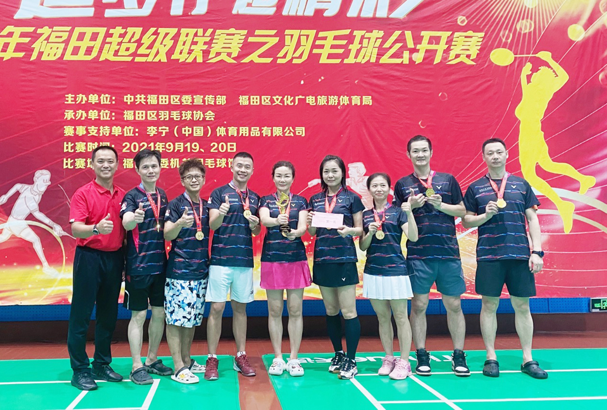 千里馬羽毛球球會在李向東董事長的親自指揮、帶領下,通過精心的備戰、科學的人員安排,以高超的競技水平一路過關斬將,最終包攬青年組、中年組冠軍,一騎絕塵。