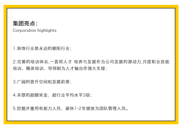 經(jīng)過10余年的發(fā)展,形成了以建筑裝飾產(chǎn)業(yè)為主體的專業(yè)化自營集團公司。集團高度重視人才培養(yǎng),視人才為企業(yè)根本,以人才戰(zhàn)略為依托,建立并完善了人才資源庫,關(guān)心員工