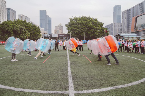 形式多變的趣味運動項目讓大家在歡笑中體驗協(xié)作精神。兩人三足各隊6位員協(xié)作共進,奮力奔向終點;碰撞透明球項目中,詼諧的比賽動作引得觀眾開懷大笑;出手快,力量狠,角度準(zhǔn)的撕名牌大戰(zhàn)燃起了各團隊的比賽斗志。趣味比賽讓大家加懂得,只要擁有熱愛運動的精神和樂觀的心態(tài),生活中隨處可見的簡單道具都能成為我們鍛煉身體的工具和快樂的源泉。