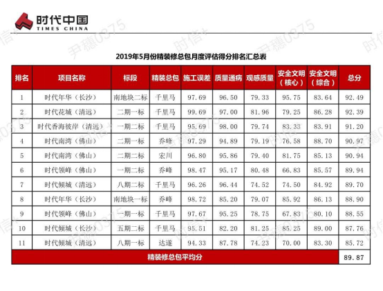 作為時代中國的精裝修戰(zhàn)略合作供應(yīng)商,我司項目包攬時代中國2019年5月月度評估前三名!可喜可賀,只要我們重視、認(rèn)真,取得好成績應(yīng)是理所當(dāng)然!恭喜獲得好成績的項目小伙伴,感謝獲得好成績的小伙伴,你們?yōu)楣救〉昧藰s譽,公司全體同事以你們?yōu)榘粒?/span>