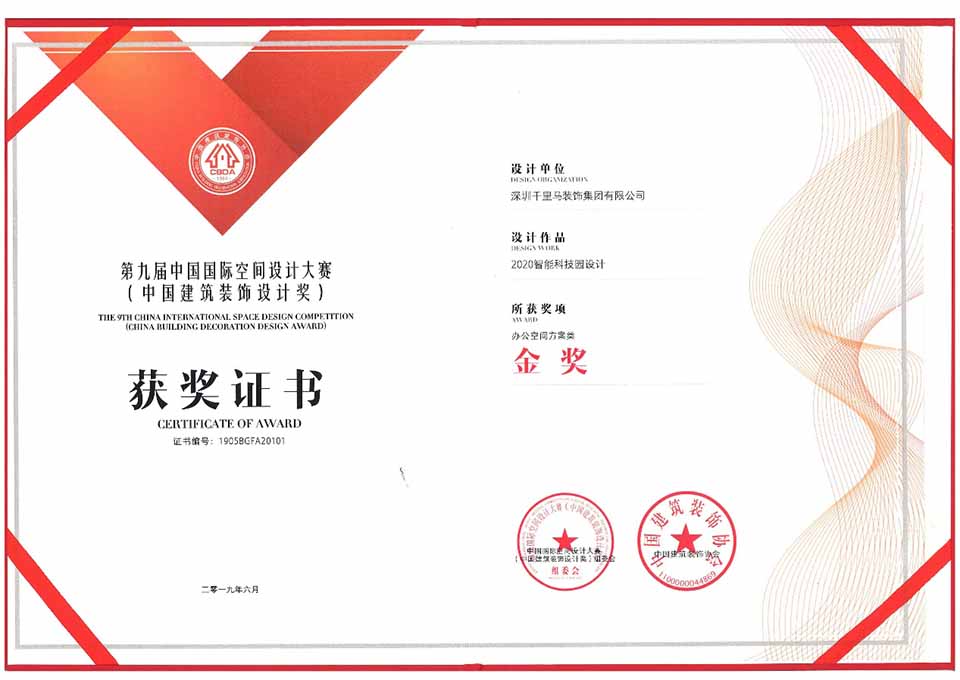 中國國際空間設(shè)計(jì)大賽是中國建筑裝飾設(shè)計(jì)界最具權(quán)威和影響力的頂級(jí)賽事,與中國建筑工程裝飾獎(jiǎng)同為中國建筑裝飾領(lǐng)域最高榮譽(yù)獎(jiǎng),也是大國工匠探索之路上,最好的史冊記載。獲此殊榮,有力印證了行業(yè)及社會(huì)各界對(duì)深圳千里馬裝飾集團(tuán)卓越設(shè)計(jì)水平的認(rèn)可。