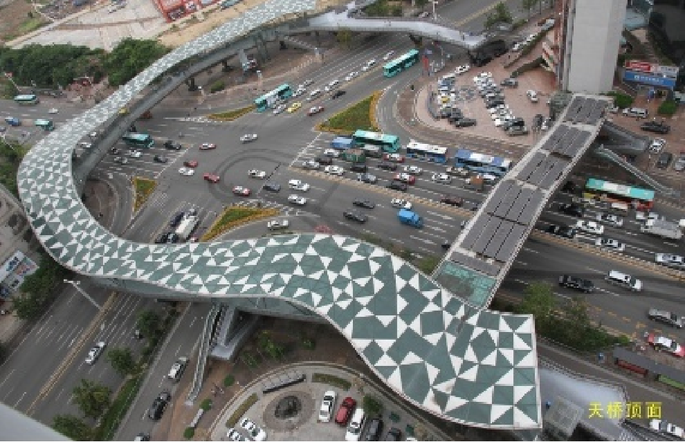 項目由十九冶集團深圳分公司總承包,我司分包除鋼結構、電梯外的所有裝飾、照明工程,是亞洲最大人行天橋。整個天橋的照明全由配備的300㎡太陽能光伏板提供。玻璃采用進口的和國家大劇院同類的納米技術自潔玻璃,每塊尺寸都不一樣,施工難度大。我司經過周密組織、科學施工,順利完成任務,獲得南山區領導的高度評價。