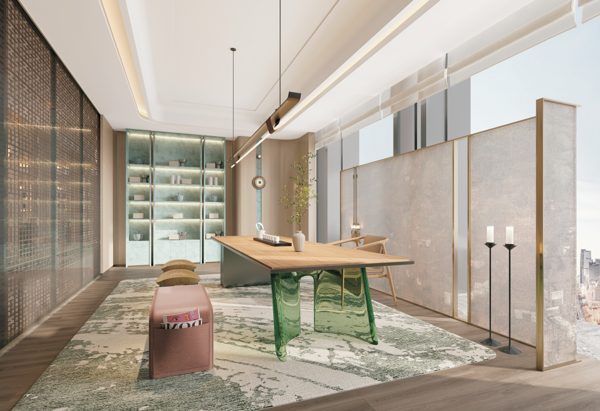前海紫荊港灣會(huì)所的整體設(shè)計(jì)走新東方風(fēng)格。本次的設(shè)計(jì)理念,是希望隱于鬧市,藝文養(yǎng)心,是都會(huì)中的桃花源,總體表達(dá)低調(diào)奢華和內(nèi)斂雅致的設(shè)計(jì)風(fēng)格,將現(xiàn)化風(fēng)格和傳統(tǒng)元素相互融合,形成豐富的感觀體驗(yàn),為客戶帶來(lái)返璞歸真的全新感觀體驗(yàn)!海派東方,演繹奢意東方之美!將柔和的線條滲透于各空間,讓水之意向以抽象的方式回歸空間,行走于墻面,流淌于天花,似靜似動(dòng)。